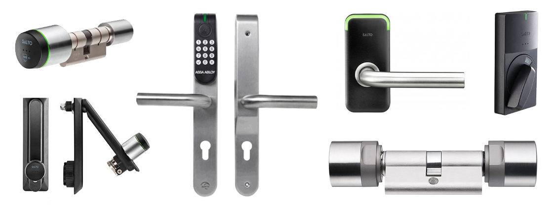 Часто под беспроводными замками понимают электронные цилиндры, установка которых является наиболее простой и сводится к замене обычного механического цилиндра в полотне двери. Но есть и другие исполнения - различные накладки с ручками для уже имеющихся замков, врезные замки или более специфические: например, для серверных стоек или шкафчиков в раздевалках фитнес-залов.Основными отличительными особенностями таких устройств являются: