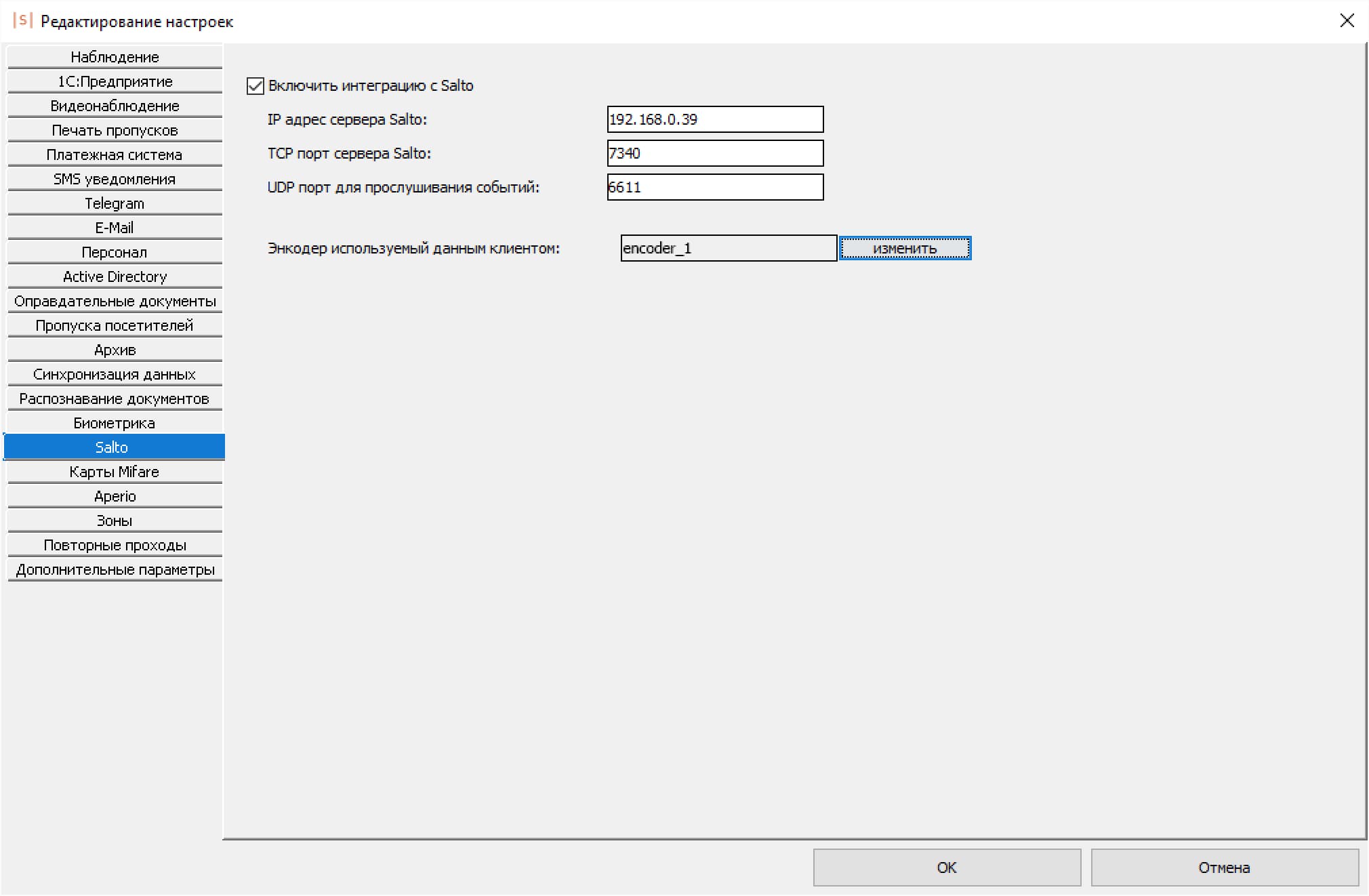 Поддерживается функция Salto AutoKeyEdit, включая загрузку UID карт из внешней базы средствами «Синхронизации данных» с последующим автоматическим прописыванием ее в поле AutoKeyEdit в Salto.Для работы с картами используется энкодер Salto. Он включается в IP сеть, и его параметры задаются в настройках ПО Salto. После этого он становится доступен в ПО Sigur, и инициализация карт ведется из интерфейса Sigur.