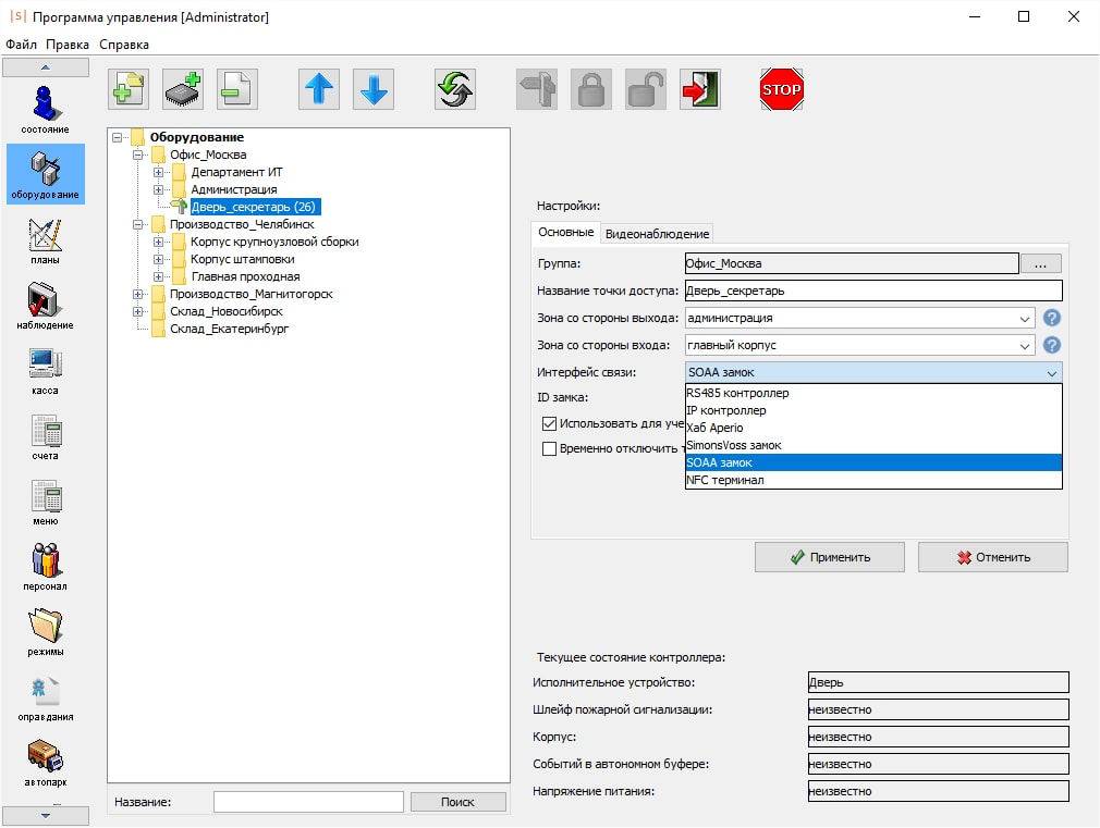 - Управление беспроводными замками из интерфейса ПО Sigur