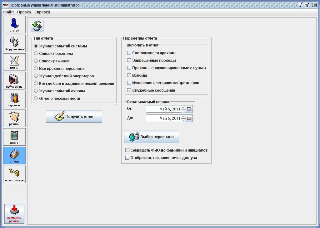 Архив событий предназначен для оперативного получения информации о произошедших в системе событиях с заданным временным периодом, точками доступа и персоналом.