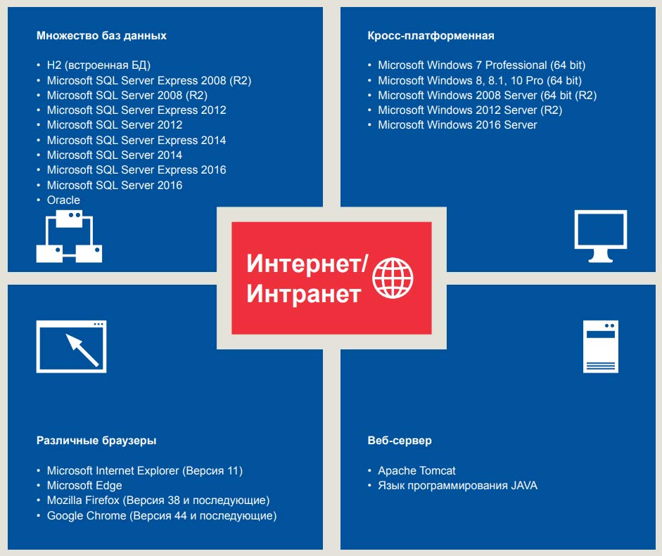 Создание пользователей системы с различными правами доступа через веб-интерфейс. Возможность доступа каждого сотрудника к собственному личному кабинету через любое устройство в корпоративной сети. Интеграция с почтовым сервером клиента для рассылки сообщений, отчетов и получения возможности сброса пароля через почту.