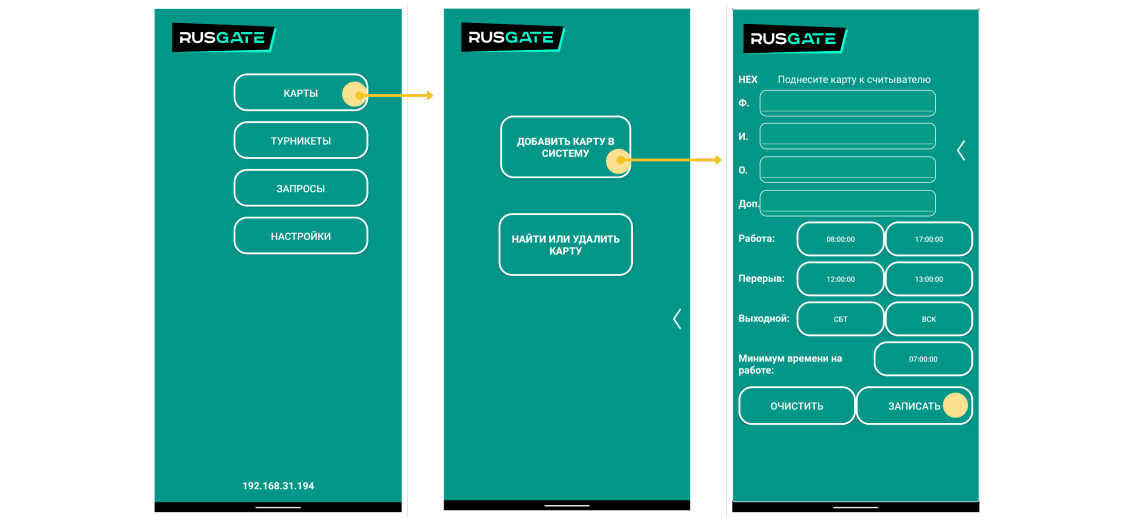 • MasterCard App для настройки и управления турникетом в режиме проходной