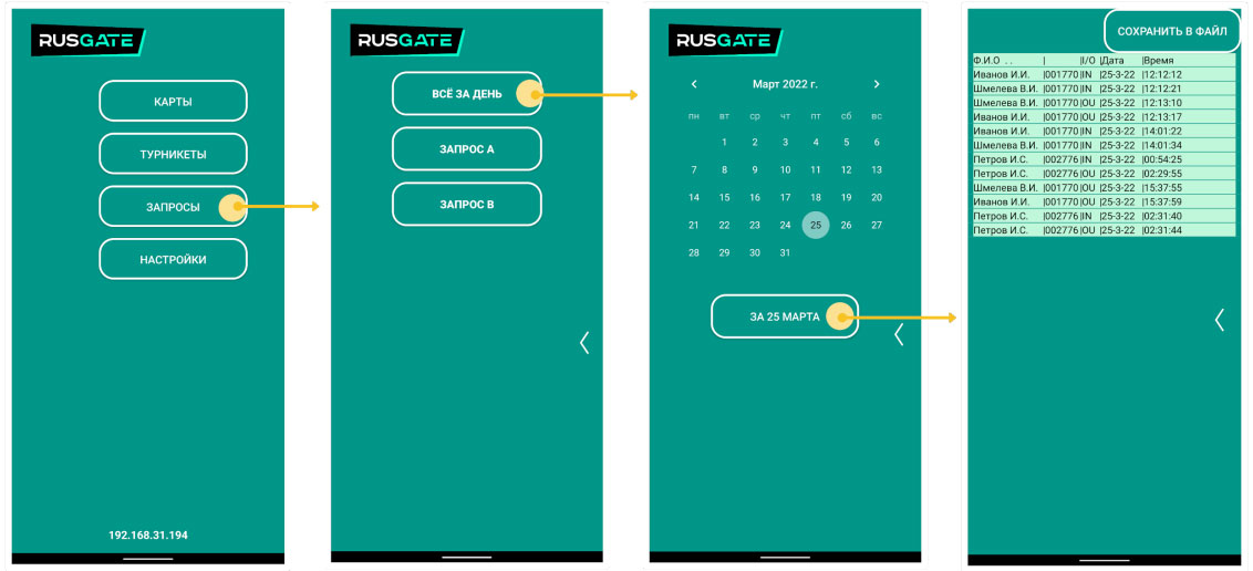 - “Все за день” на выбранную дату. Отчет содержит полную детализацию событий;
