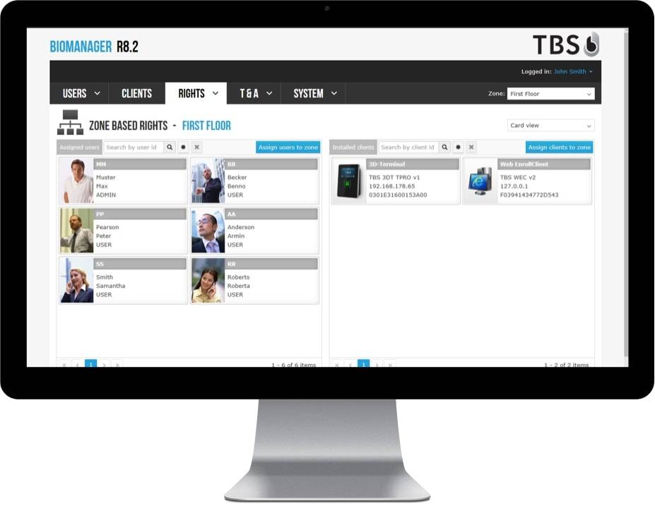 Все устройства TBS управляются программным обеспечением сервера TBS, вместе формируя биометрическую подсистему TBS.