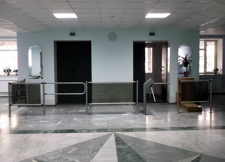 При организации точки прохода на проходной также необходимо предусмотреть дополнительный аварийный выход. Таким выходом может служить, например, поворотная секция ограждения PERCo-BH02 «Антипаника».