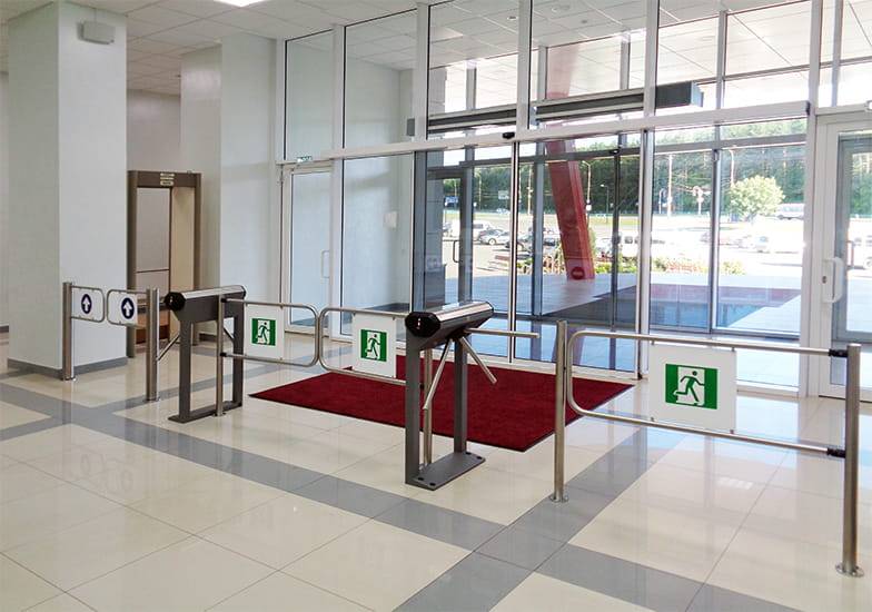 В аварийных и нештатных ситуациях (например, при выходе из строя источника питания) зону прохода электронной проходной можно использовать в качестве дополнительного аварийного выхода, предварительно разблокировав вращение ее преграждающих планок либо используя планки «Антипаника».