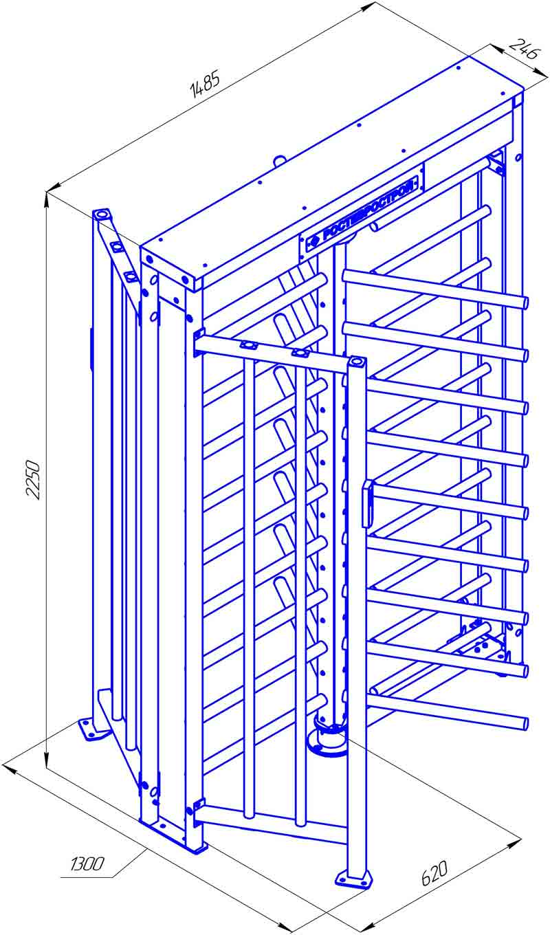 Тип турникета - полноростовой роторный одинарный трехлопастной для прохода в двух направлениях, нормально открытый с режимом пропуска одного человека по идентификатору личности или от пульта охранника.