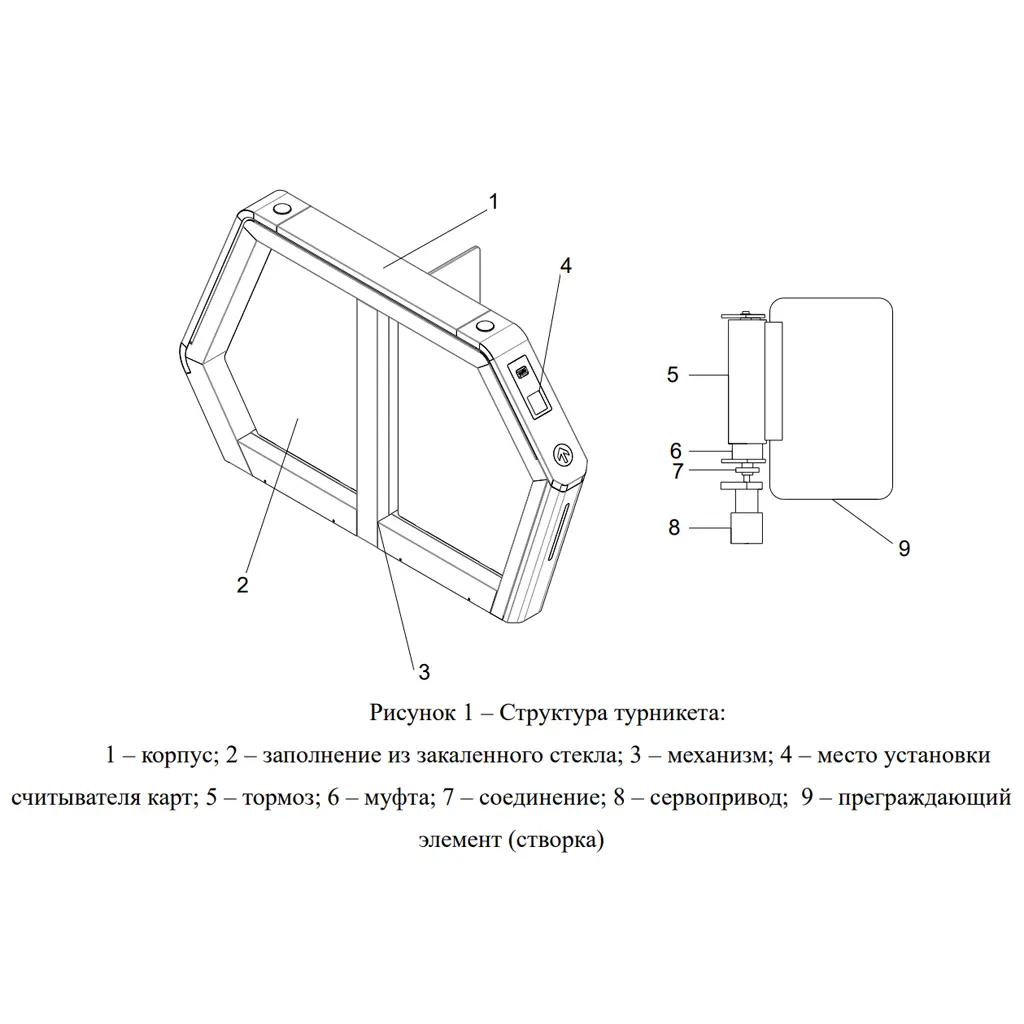 - Створки турникета автоматически разблокируются при отключении питания, что соответствует требованиям пожарной безопасности;