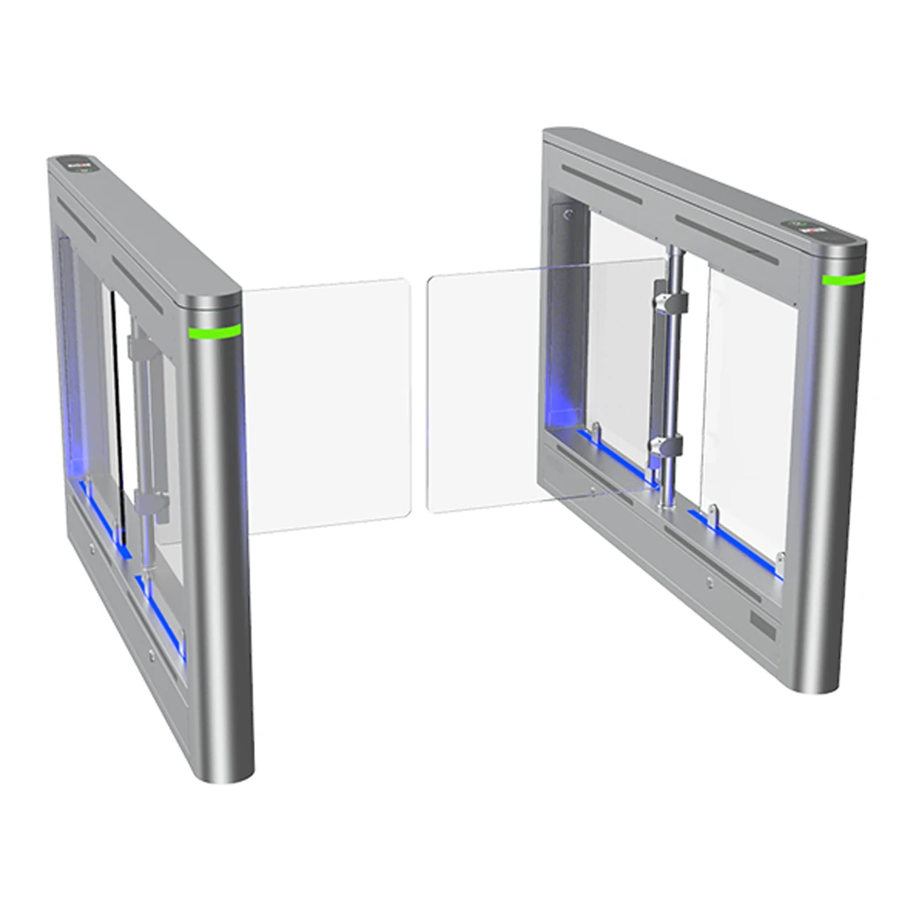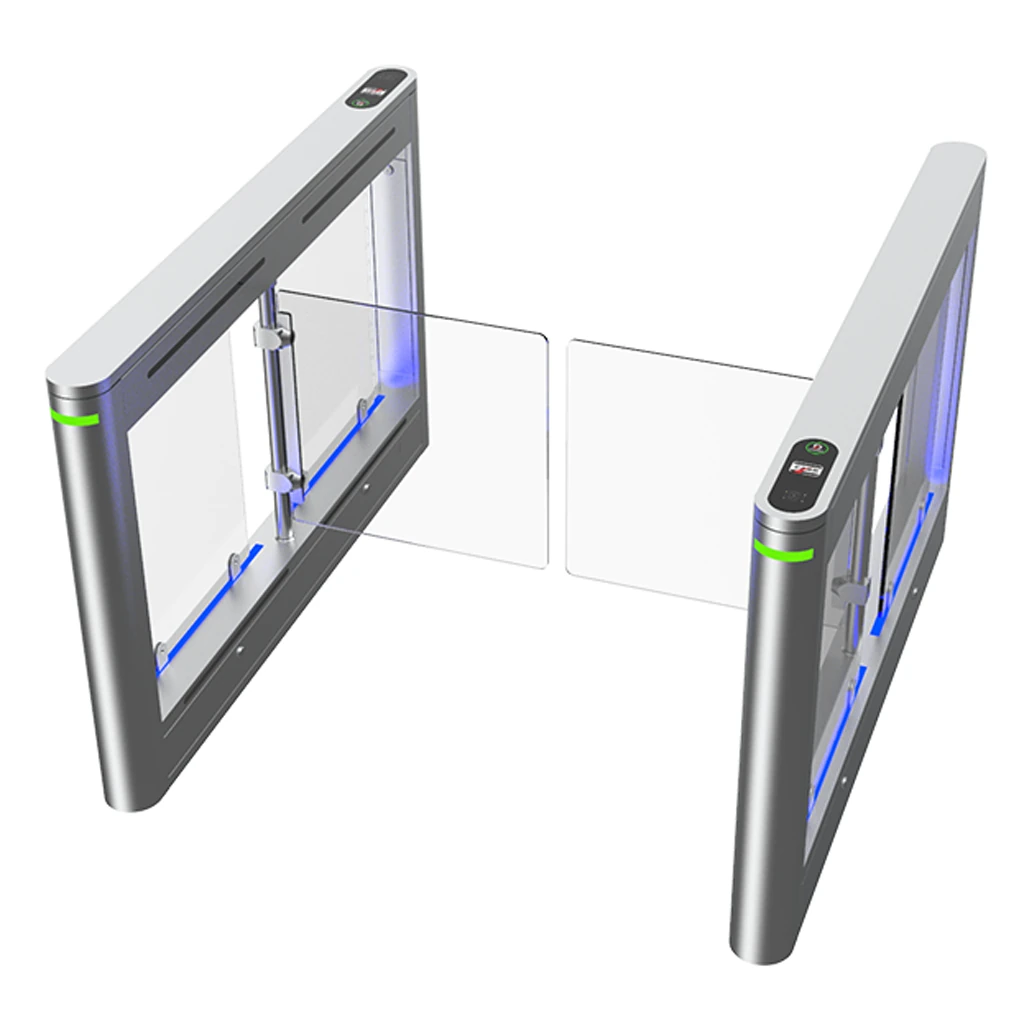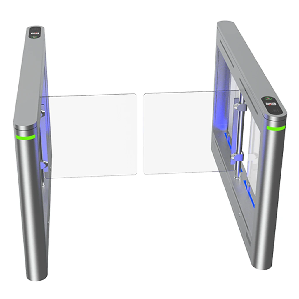 - Полуростовой распашной турникет со створками из акрила или нержавеющей стали.