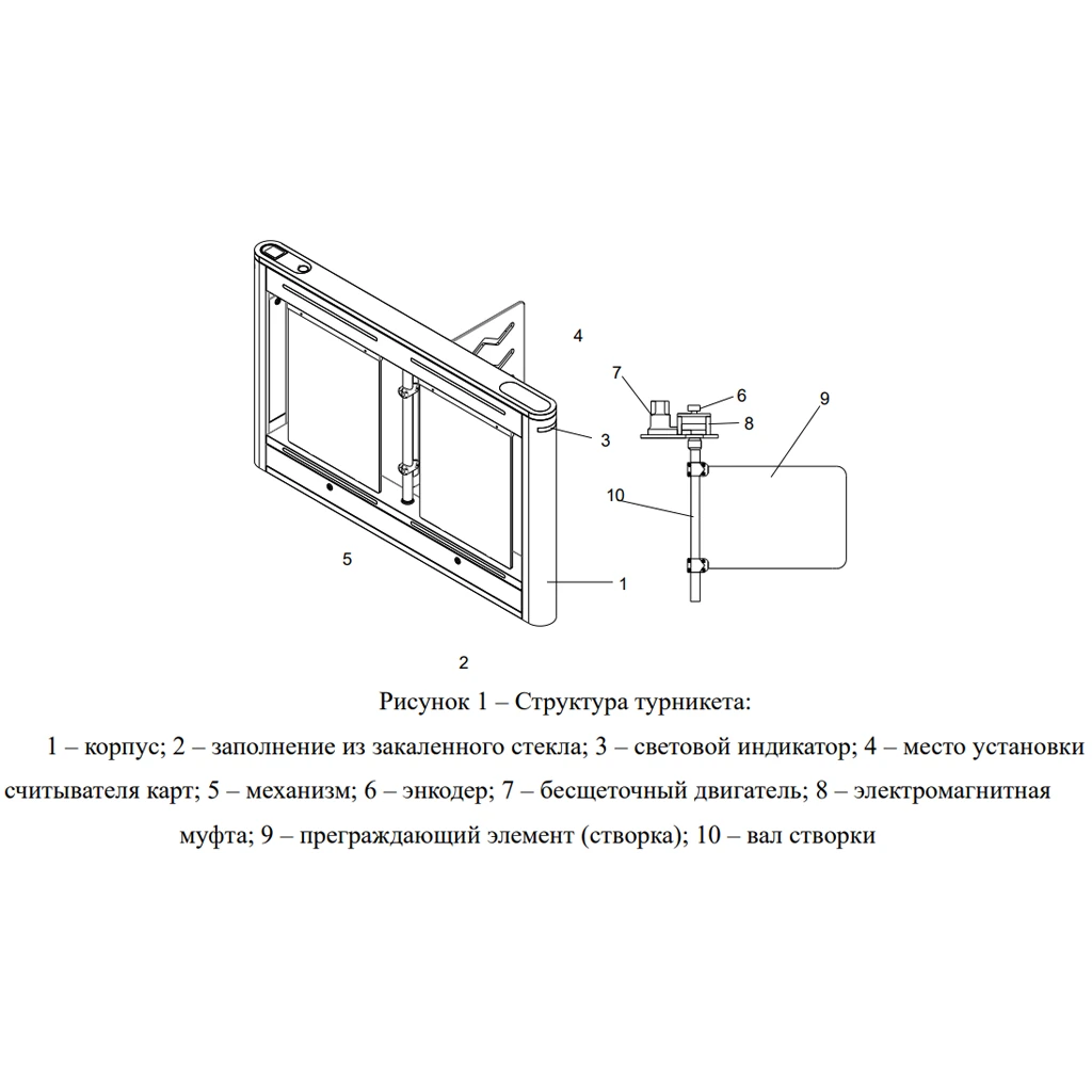 - Створки турникета автоматически разблокируются при отключении питания, что соответствует требованиям пожарной безопасности;