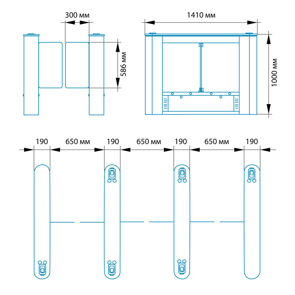 При использовании РСП 600 следует располагать параллельно друг другу в один ряд. Расстояние между тумбами турникета составляет 650 мм.