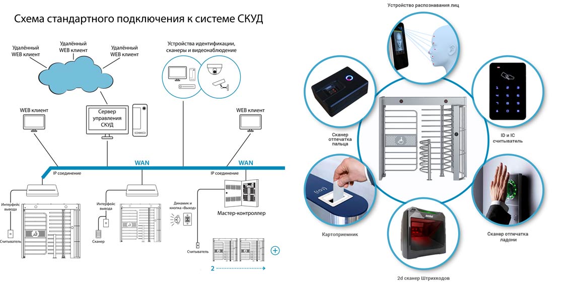• Интеграция в СКУД — возможность сборки нескольких терминалов в единую цепь (механически и программно).