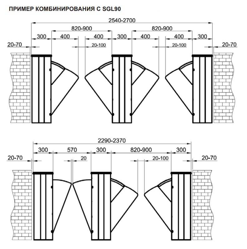На верхней крышке SGL01 в обоих направлениях установлены акриловые пластины. Пространство под этими пластинами обеспечивает достаточно места для считывателей и дополнительных блоков. На моделях SGL02 и SGL90 считыватели устанавливаются под стеклянную крышку турникета.