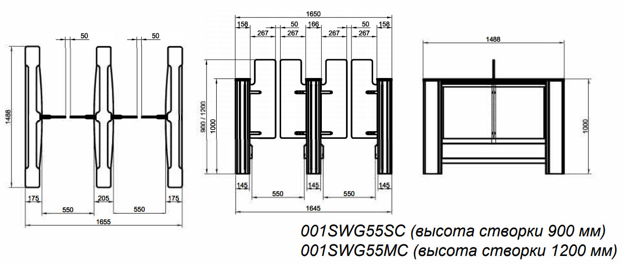 • SWG55 - ширина прохода 550 мм, скорость открытия створок 0.5 секунды, заводские настройки