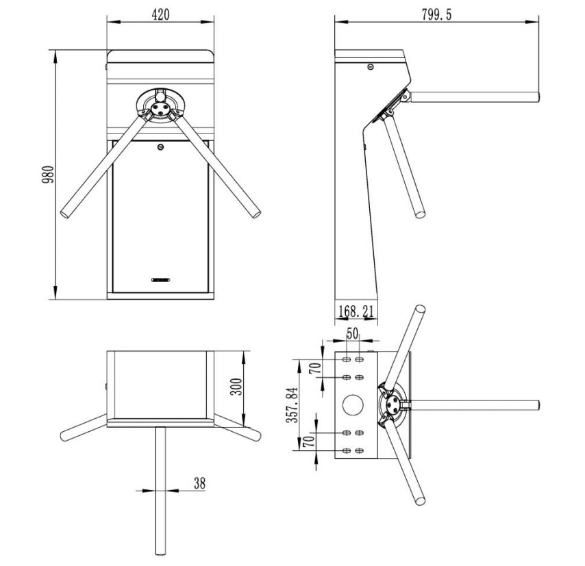 Турникет серии DS-K3G201 представляет собой прочную и долговечную конструкцию из нержавеющей стали (SUS304) с защитой от внешних повреждений. Можно подключить считыватель карт, терминал распознавания лиц и другие устройства, предназначенные для контроля входа и выхода с объекта.