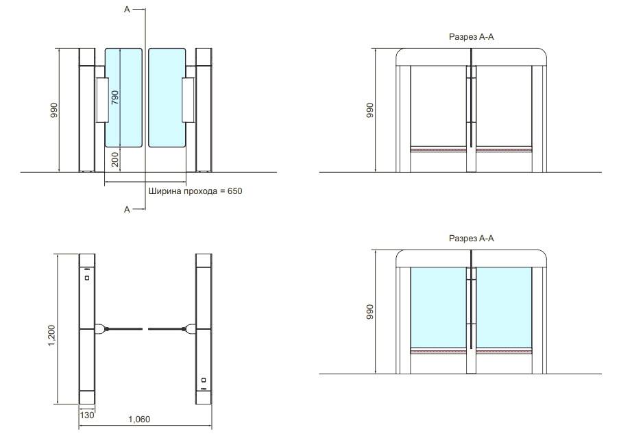 • Режимы работы: Закрытое основное состояние, режим «ночь»: створки открываются в направлении прохода при предъявлении разрешения на проход, а затем снова закрываются
