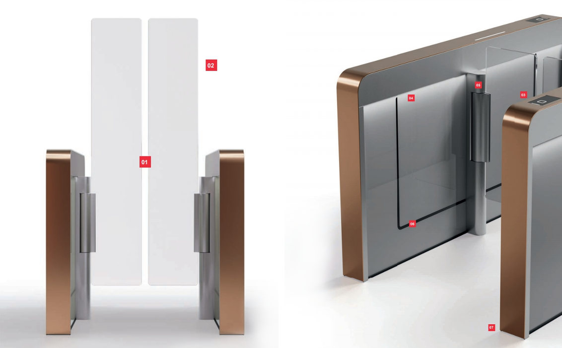 Надежные сенсорные барьеры этой серии оснащены распашными створками из прозрачного поликарбоната. У большинства моделей высота створок составляет 900 мм. Зона поворота створок контролируется при помощи датчиков индивидуального прохода. После завершения авторизованного прохода створки автоматически закрываются, и неавторизованный доступ становится невозможным.