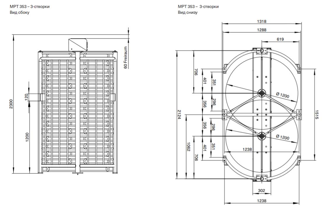 • Размеры турникета: 2210 x 1318 x 2235 мм