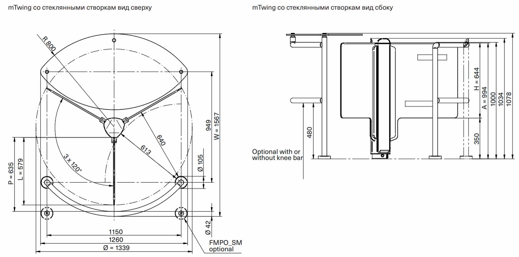• FMTW_MG - Полуростовой роторный турникет FlowMotion® mTwing для стеклянных створок (без створок): 1 шт.