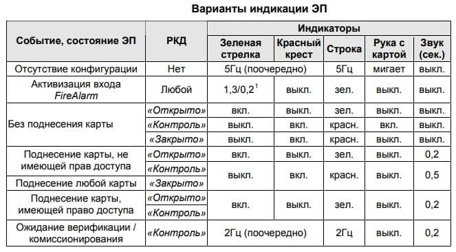 • При разрешении доступа по карте световая индикация включается на Время удержания в разблокированном состоянии, либо до факта совершения прохода. При запрете прохода индикация включается на 1 с.