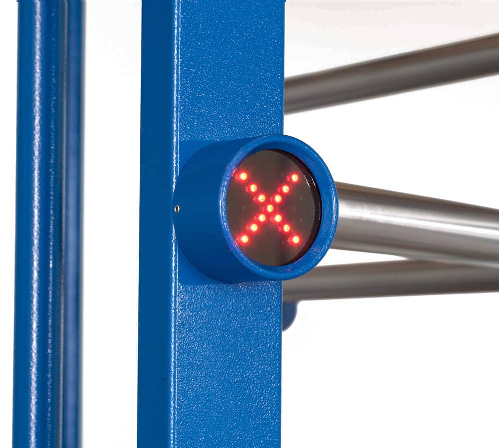 Турникет снабжен встроенными световыми индикаторами разрешения и запрещения прохода со светодиодами. Есть возможность подключения дополнительных выносных световых индикаторов.