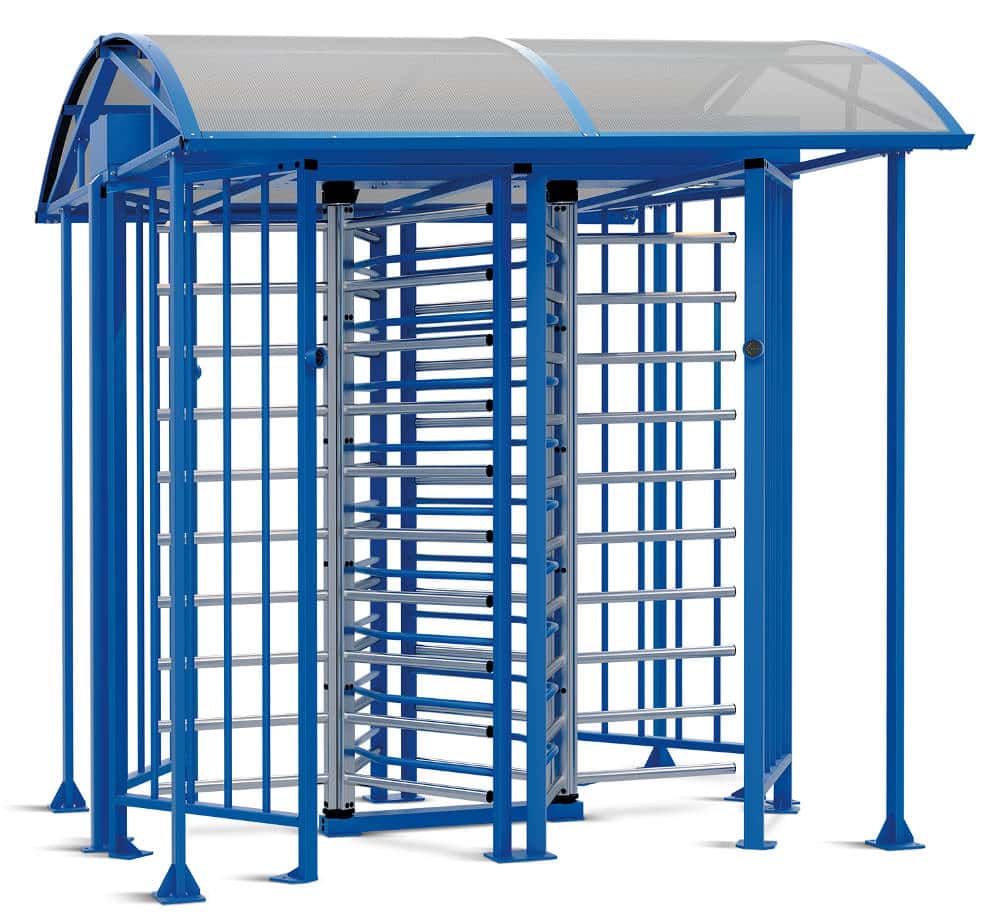 Дополнительная защита турникета от атмосферных осадков и попыток проникновения через его верх достигается опциональной установкой крыши, соединяемой с турникетом в единую конструкцию (поставляется отдельно).