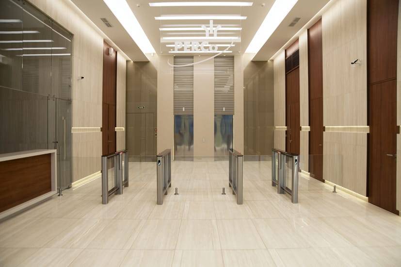 • При необходимости количество зон прохода через турникет может быть увеличено установкой двусторонних секций PERCo-STD-01.