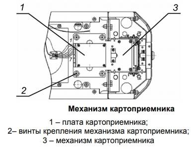 В торцовой крышке со стороны выхода расположена приемная щель картоприемника, имеющая внутреннюю подсветку. Контейнер картоприемника закрыт замком и имеет легкий доступ для обслуживания.
