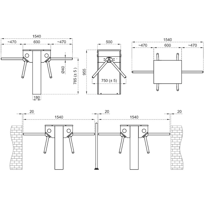 Тип корпуса турникета | Двухпроходной, Напольный |
