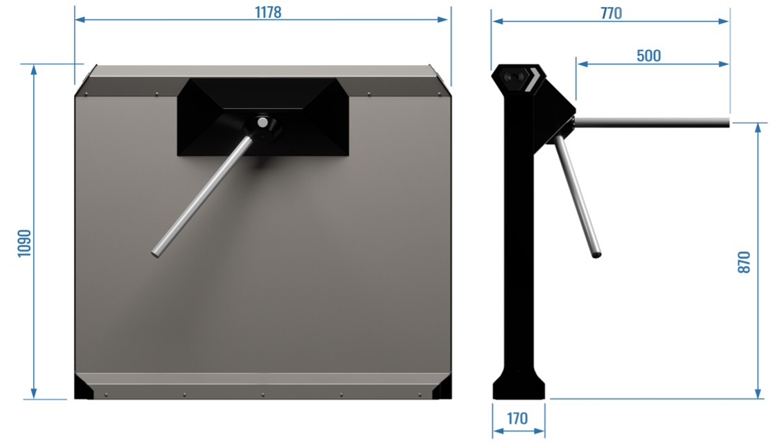 • Ширина перекрываемая габаритом турникета: 770 мм