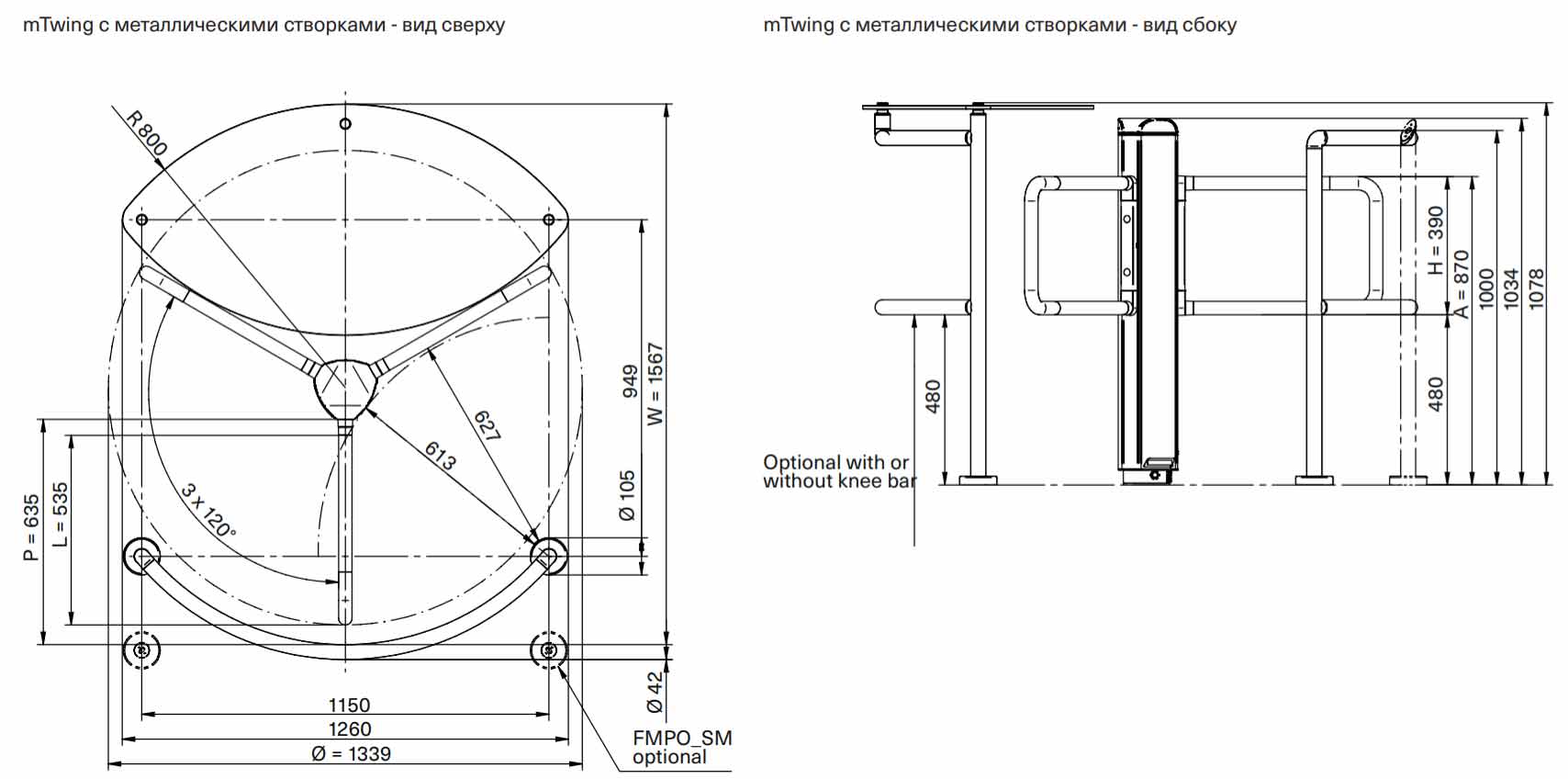• FMTW_U580 - Металлические створки (1 шт.), необходимо 3 шт., с шириной прохода "D" 630 мм