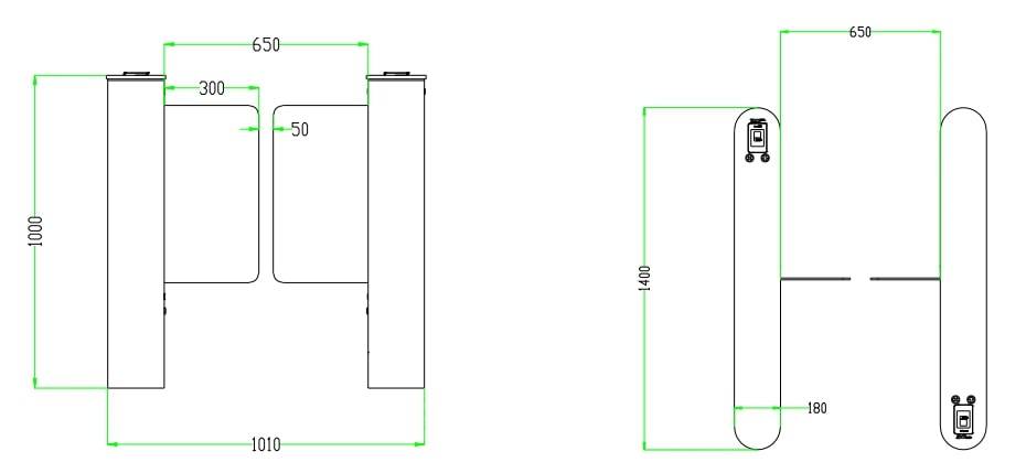 Турникеты SBTL5011 обычно работают в заблокированном положении, что препятствует свободному доступу на закрытую территорию. После считывания (RFID и / или отпечатка пальца), при положительной верификации пользователя, створки барьера автоматически распахиваются, позволяя пользователю свободно пройти.