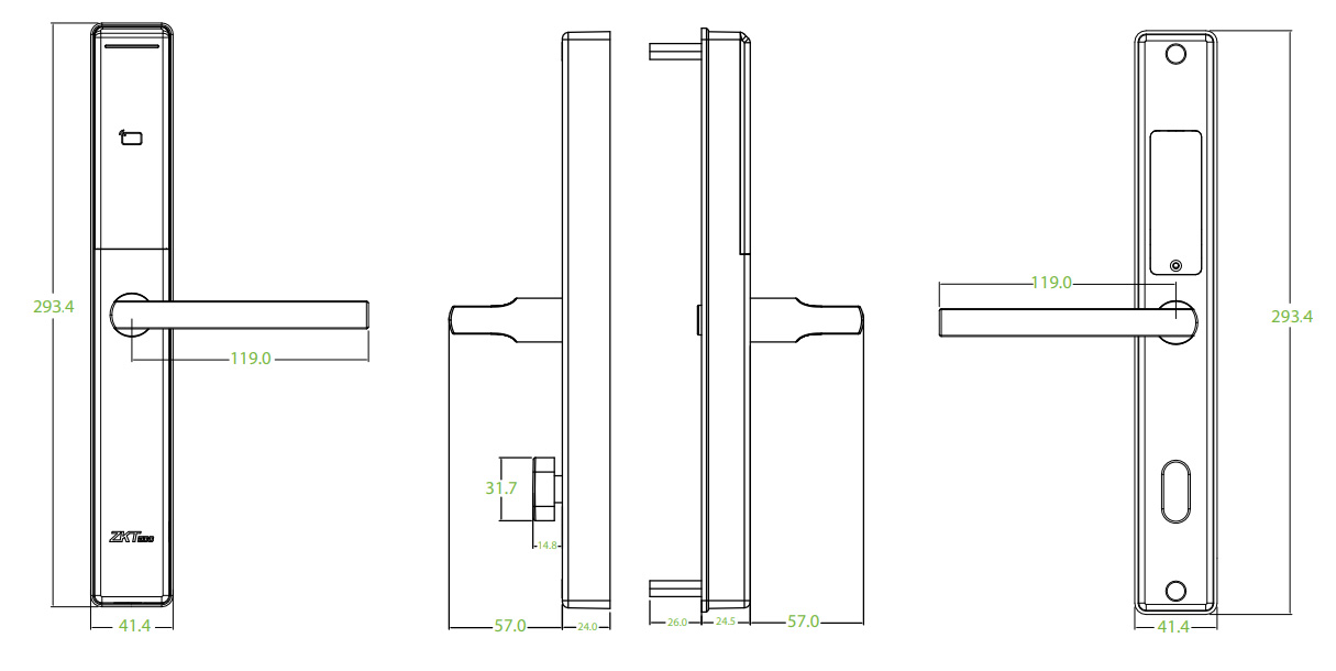 Корпус врезного замка ZL600 выполнен по европейскому стандарту, что позволяет пользователям отпирать дверь с помощью смартфона HTML5 (H5), который поддерживает ZKBioHLMS.
